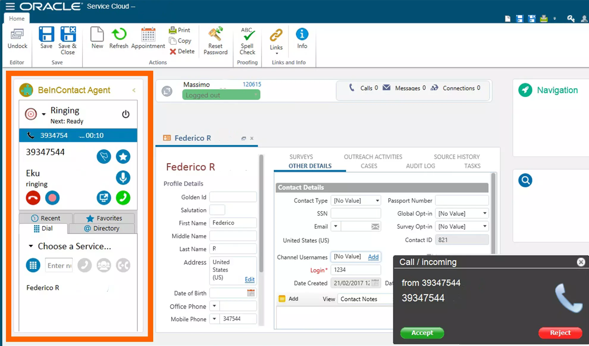 Access Oracle and take advantage of all the features of the BeInContact Agent Desktop. Implement the CTI Phone bar within the oracle call center layout to manage communications with your customers, also allowing the operator to manage incoming interactions accompanied by all the information recorded within the CRM, optimizing the management of the contact and information sharing. Easily implement all these features thanks to the add-in and native connector, without the need for coding or development skills.