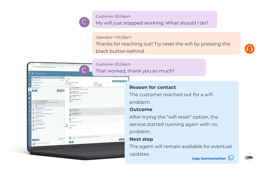 It captures key points, clarifies intent, and eliminates information overload. Agents stay fully focused on customers, without manually writing down every interaction detail.